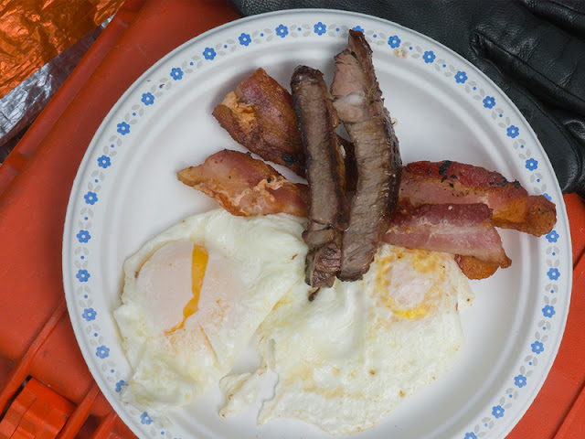 Breakfast. The strips of Raccoon meat were even saltier than the bacon!